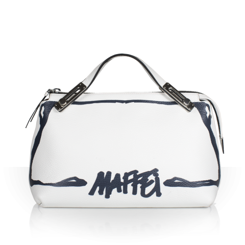 Borsa in pelle di vitello martellata stampa firma Chiusura con zip Tracolla rimovibile e regolabil..