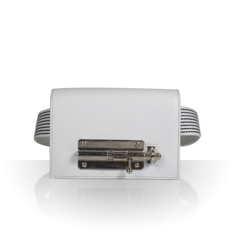 Borsa in pelle di vitello Chiusura in metallo sulla patta Cinghia rimovibile e regolabile in coto..