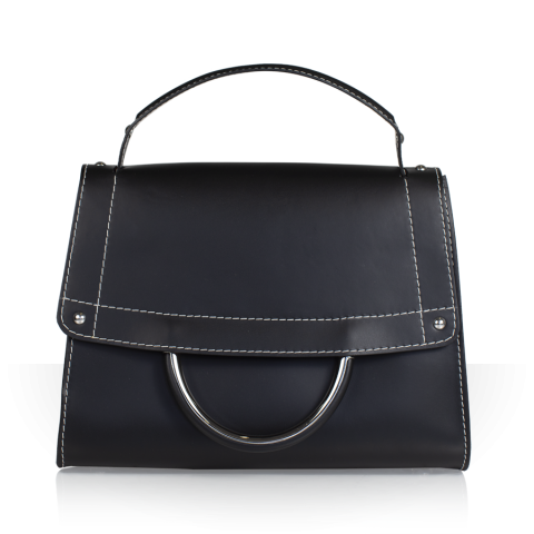 Borsa in pelle di vitello saffiano liscio con impunture a contrasto bianche. Chiusura con manico in ..